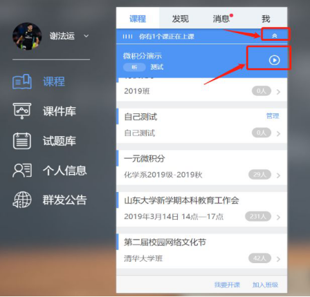 备注:发布的同步课堂想回看务必在关闭同步课堂的时候,保存速课。当课程教师团队多位老师同时开两个同步课程支持。会生成两个不同的同步课堂邀请码。