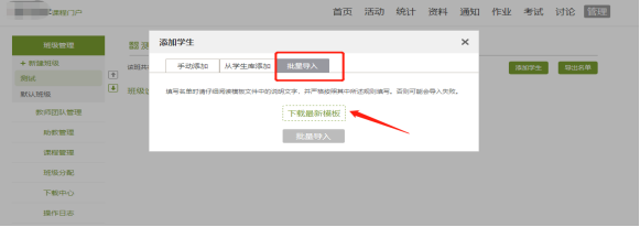 1)电脑登陆后进入课程,依次点击管理,创建班级,添加学生,学生库添加或批量导入。