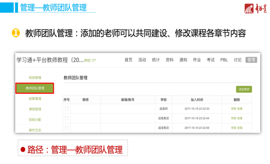 进入一门课程——右上方“设置”——“教学团队管理”——“添加教师”。