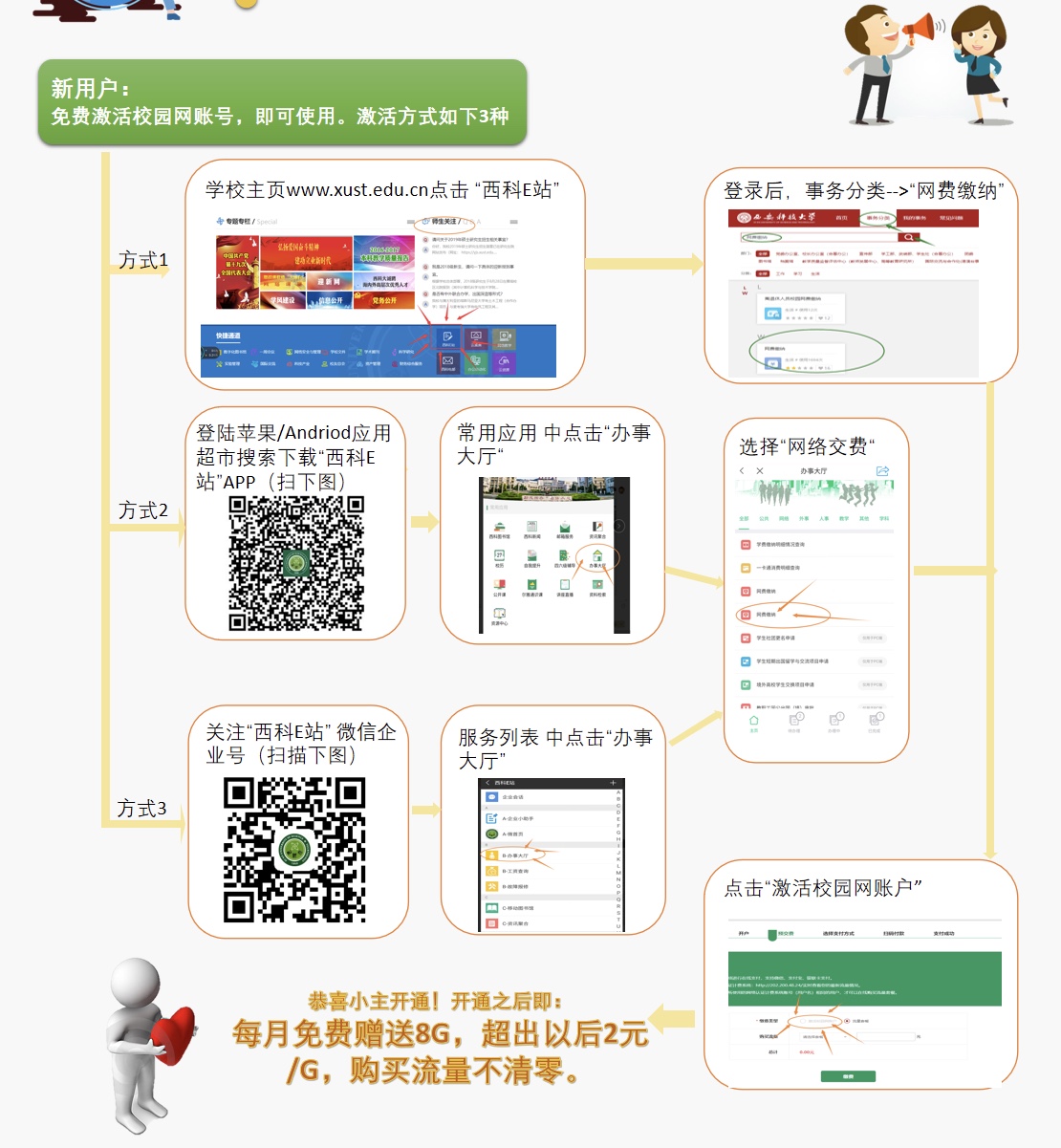 a、在宿舍范围内能搜索到两个校园网无线信号:一个是自己宿舍无线路由器的无线信号(名字为自己设置的),另一个是学校布置的无线AP发出的无线信号(学生连接XUST-Student)。